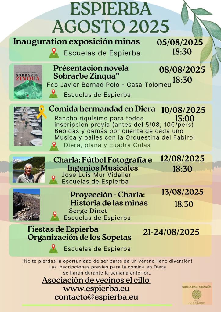 Aldea de Espierba : Zapatierno, Las Cortes, Bachòn, Casa d'Abajo, Casas d'Alto, Es Morès, Payarals, Pañart, La Sarra, Casart, Valle de Pineta.